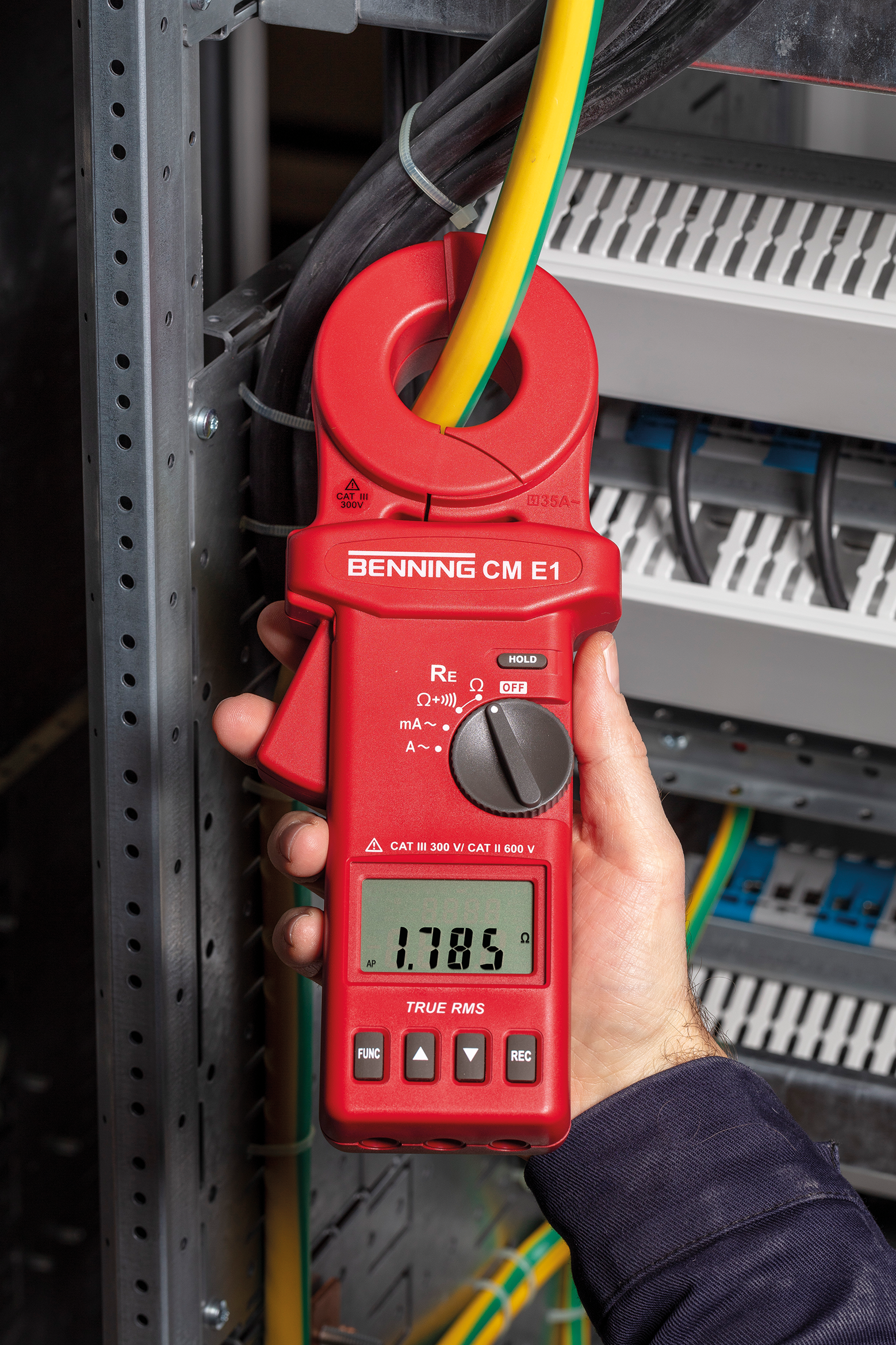 - De BENNING CM E1 meet (berekent) de weerstand van de totale aardlus Rs = U/I