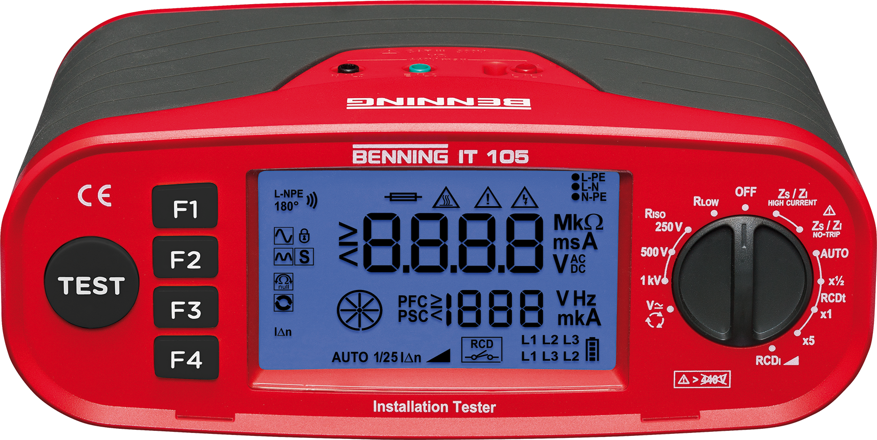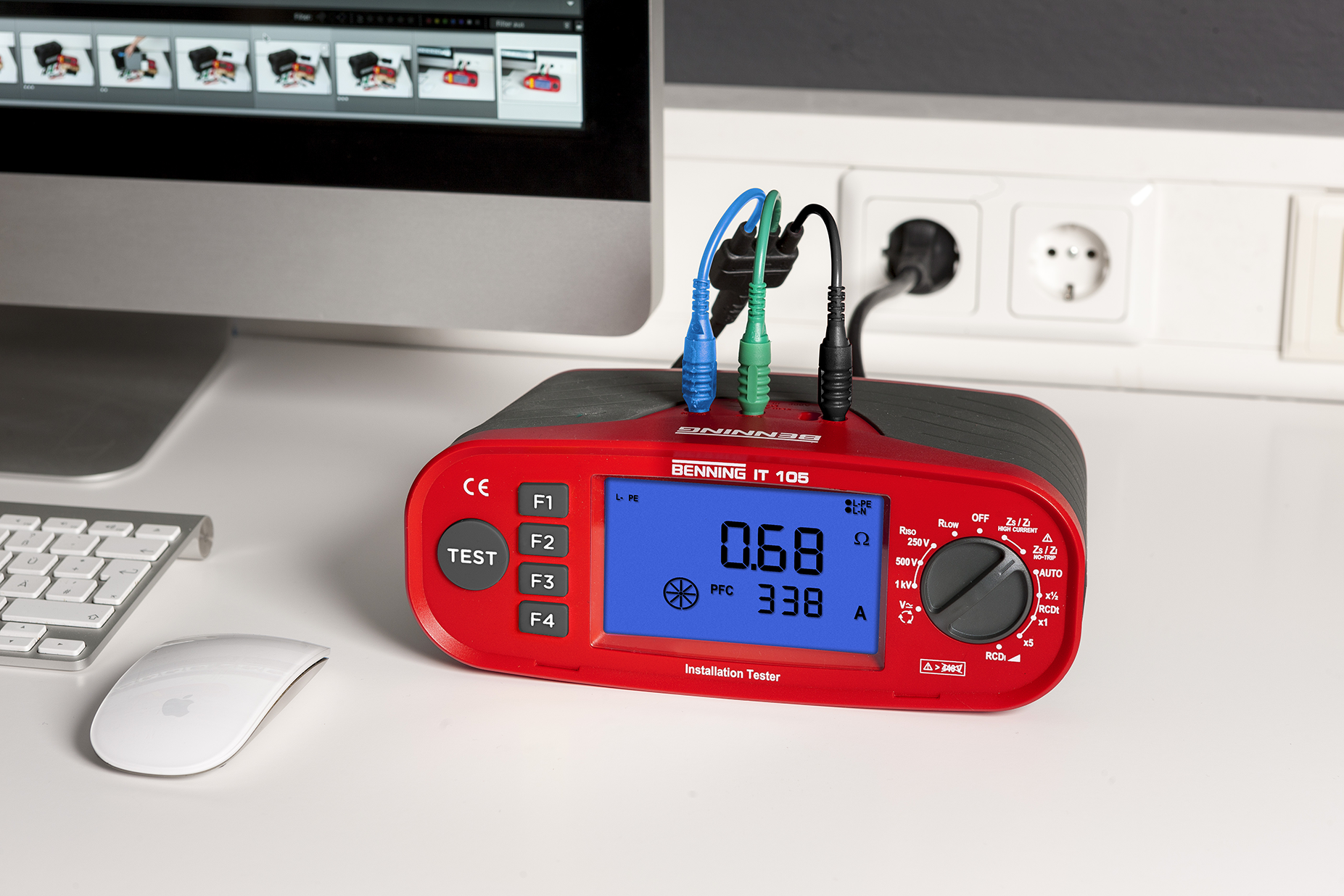 Installatietester voor veiligheidstesten van elektrische installaties volgens IEC 60364, EN 50110 en NEN 3140