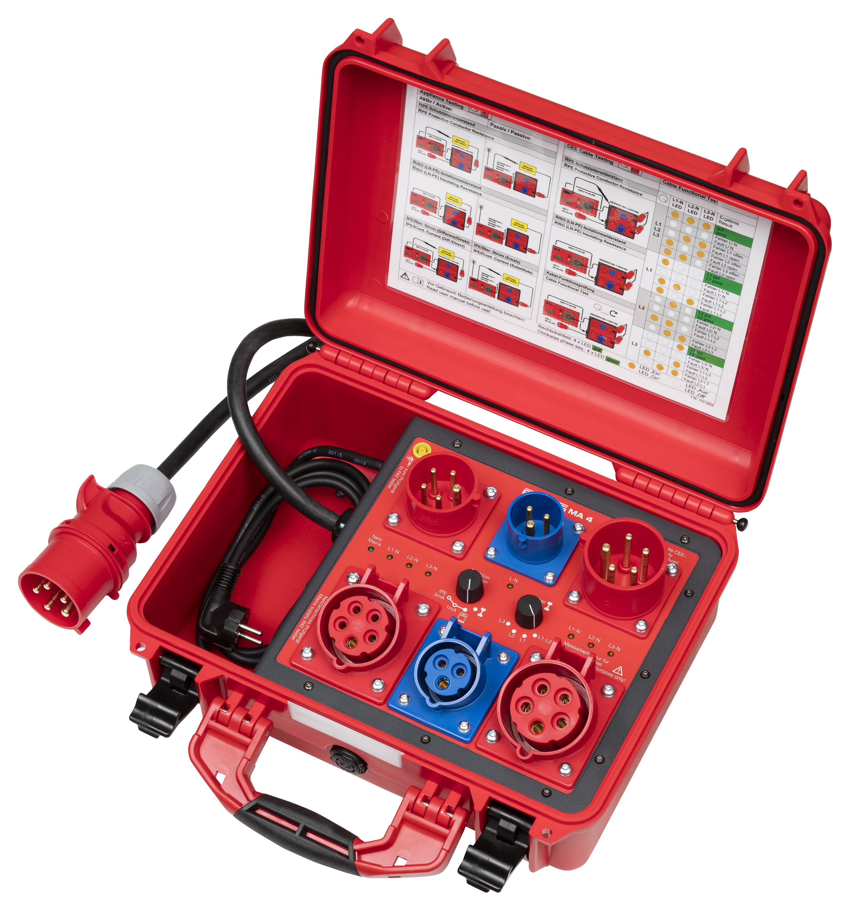 • 1-fase (230 V, 16 A) en 3-fase (400 V, 16 A + 32 A) apparatuur met CEE-aansluiting testen